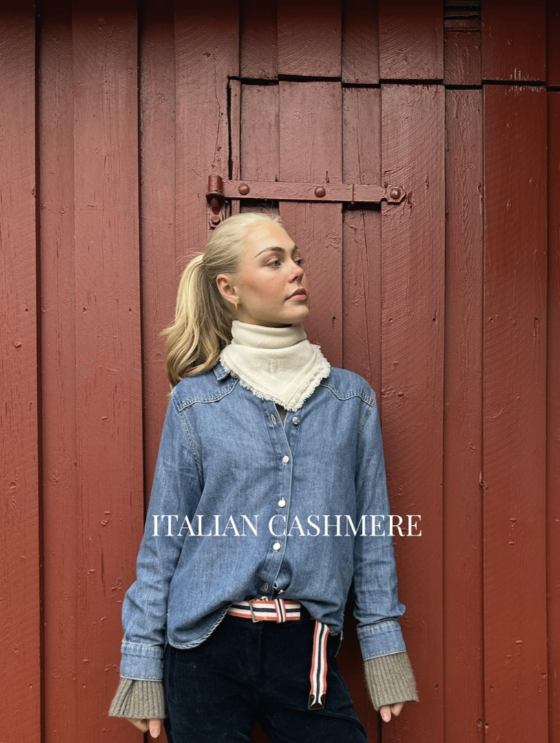 Skjerf i 100% italiensk kasjmir, designet og produsert i Norge. Skjerfet er firkantet i fargen Oat med frynser. Passer til alle farger klær og vakker mot huden. Ett perfekt tilbehør i vår tidløse og eksklusive stil.